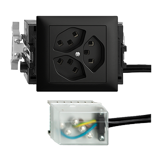Presa tripla tipo 23 • 16 A, 250 V AC, L + N + PE • Con morsetti a innesto • Parallela • nero