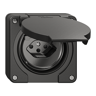 Couvercle avec clapet pour prises de protection à courant de défaut • Avec joint noir • Découpe 60 mm • Avec vis et joint • noir