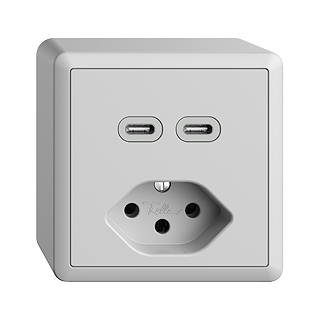 USB C+C/T13 Kombination 3.0A • 230 V AC • Ausgangsstrom max. 1 x 3000 mA oder 2 x 1500 mA • 2 USB-Anschlüsse Typ C • Mit Steckklemmen • F • hellgrau