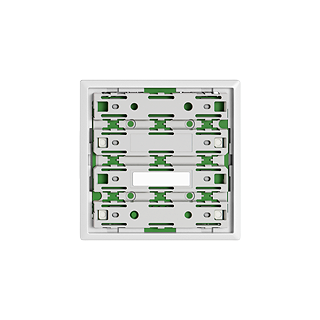 EDIZIO.liv • Placca frontale per pulsante UNI • Versione collegamento ad innesto • 12-48 V DC / 12-36 V AC • Corrente di commutazione min 1 mA, max. 50 mA • Mass. 14 L • Senza tasto • Senza LED • Sistema de fissagio SNAPFIX® • bianco • 60 x 60 mm