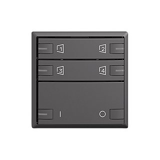 ON/OFF 1 canal • Set de recouvrement zeptrionAIR • Les touches intelligentes permettent de commander des scènes zeptrionAIR par WLAN • Touches inférieures pour ON/OFF 1 canal • Le set de recouvrement zeptrionAIR se monte sur le module intermédiaire WLAN zeptrion 2K (3340-2-B.ZEP) et l'unité fonctionnelle ENCL/DECL 1 canal zeptrion 3301 ou l'unité fonctionnelle station centrale/secondaire 3320 • Avec RGB LED • Touche double • Commande 2x • Scène zeptrionAIR sur 4 touches intelligentes • F • gris foncé • IP20 • 60 x 60 mm
