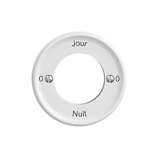 STANDARDdue (SNAPFIX) • Set de recouvrement • Pour interrupteur rotatif avec serrure de sûreté • Inscription 0 - Jour - 0 - Nuit • Sans plaque de recouvrement • Disque frontale 60 mm, pour découpe 58 mm • Q.A (920-, 60) • blanc • IP20