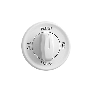 STANDARDdue (SNAPFIX) •  Abdeckset •  Für Drehschalter mit Drehgriff •  Beschriftung Automat - Hand - Automat - Hand •  Ohne Abdeckplatte •  Frontscheibe 53 mm, für Bohrung 50 mm •  Q.A (920-, 53) •  weiss •  IP20
