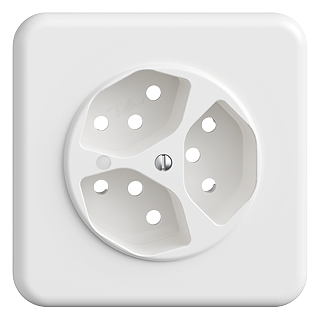 STANDARDdue (SNAPFIX) • Set di copertura • Per presa tripla tipo 13 • Con lente frontale • Disco frontale 60 mm, per ritaglio 58 mm • Con telaio di copertura • QMI.A (920-) • bianco • IP20 • 90 x 90 mm