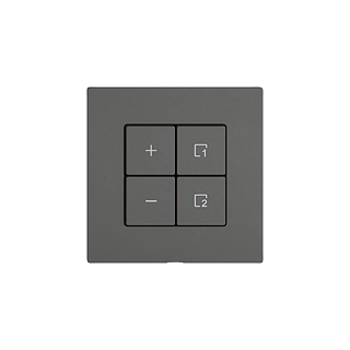 EDIZIO.liv • Bedienaufsatz Wiser Dimmer 1-Kanal Szene • Funktionsfähig mit Wiser Funktionseinsatz • Besteht aus Abdeckset und Steuermodul • Die Szenentaste ermöglicht das Speichern und Abrufen von Szenen • Beleuchtbar mit integrierter LED • 4 Tasten • Ohne Abdeckrahmen • SNAPFIX® Befestigungssystem • G.A (926-) • dunkelgrau • IP20 • 60 x 60 mm
