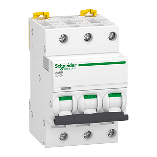 Disjoncteur Clario iC40 3L • Courant nominal 25 A • Caractéristique de déclenchement D • Temporisation au déclenchement 6000 A • Pour barres profilées DIN • Pôle: 3P • VISI-SAFE: pour un fonctionnement sûr et des travaux de maintenance en toute sécurité • RoHS, conforme REACH, sans halogène • Produit Green Premium • Série de produits Schneider Electric: iC40N • 3 UM